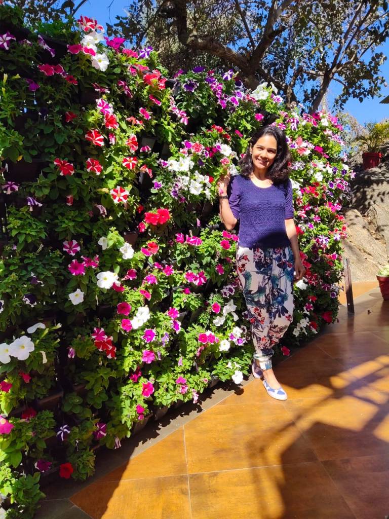 SNAP: The front porch and the wall of flowers just outside our room! I hope I have pics of them without me in the foreground 😛