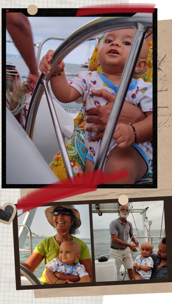 Four hours on blue waters with this delightful duo and occasional sighting of dolphins is one of the best ways to spend an evening in Goa! I’ll admit I nearly got sea-sick and couldn’t enjoy as much as I would’ve loved to but my son was the star of the evening! Also I must proudly say that my in-laws are always game for anything, so much so that my MIL encouraged me to get down to the back of the yacht and dip my feet in the water! Our photos may not make it to IG but they’re framed in our hearts forever. Awwww!!