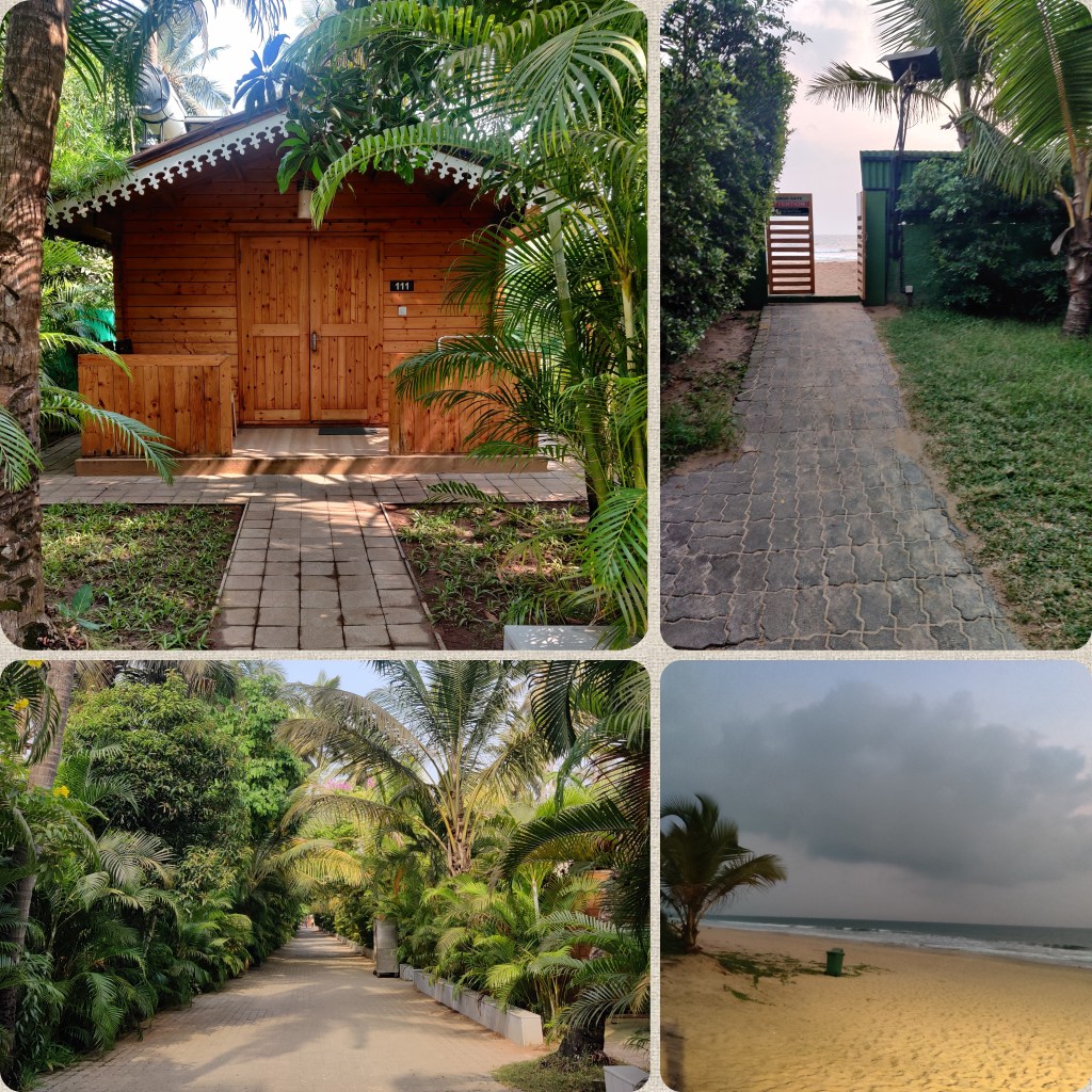 On Monday morning the five of us headed to South Goa in a self driven rented car. Having stayed at Palolem and Benaulim on earlier trips, we settled on Varca Beach after we discovered ‘Majestic Beach Resorts’, a lovely property for nature-lovers like us with wood-cabins, outdoor pool and easy access to beach!