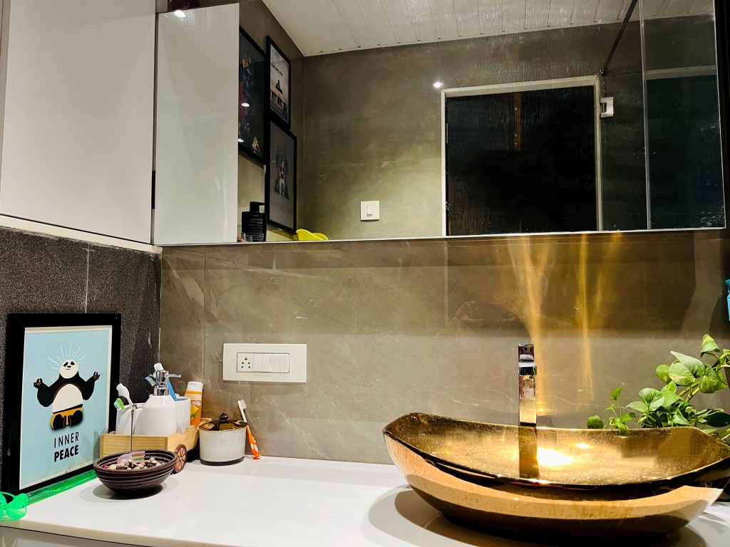 As far as the dream bathroom was concerned, I got the chance to convert our boring one into a whacky bathroom that was suited to my Aquarian tastes and preferences in 2021 when we went in for renovations before the arrival of our baby! (minus the books)…